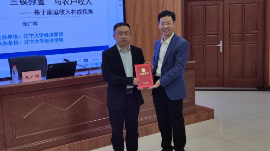 经济学院张广辉教授应邀作了题为《农村承包地“三权分置”与农户收入——基于家庭收入构成的视角》的学术报告。报告以党的二十大报告中“促进共同富裕,最艰巨最繁重的任务仍然在农村”“农民农村共同富裕的核心是农民收入问题”为背景,结合当前农村空心化、农业边缘化、农民老龄化等现象,提出农村土地流转能否提高农民收入水平及如何影响农民收入等问题,阐释了农村承包地“三权分置”影响农民收入的机理,并通过2014年和2016年全国25个省、自治区及直辖市的面板数据进行实证分析,得出农村承包地三权分置对农户家庭收入与分项收入具有重要影响,通过土地流转会对农户家庭收入与分项收入产生异质性影响等结论,进而提出深入推进农村承包地三权分置、完善农村土地流转市场、因地制宜推动农业农村发展的建议。