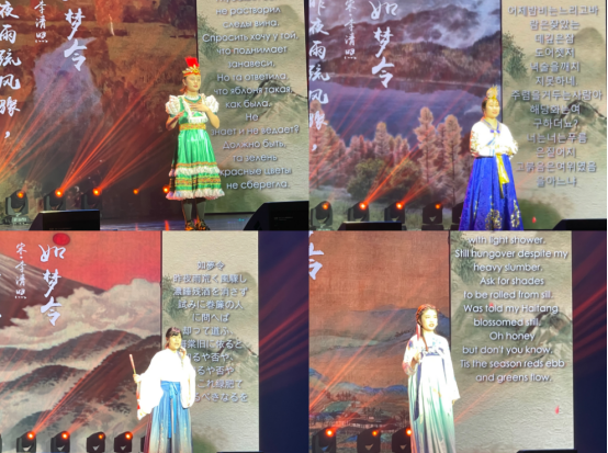 来自不同国家的获奖选手、省内各参赛单位的工作人员、中外翻译人才,用多语种表演了朗诵、演讲、合唱等文艺节目,现场精彩纷呈。
