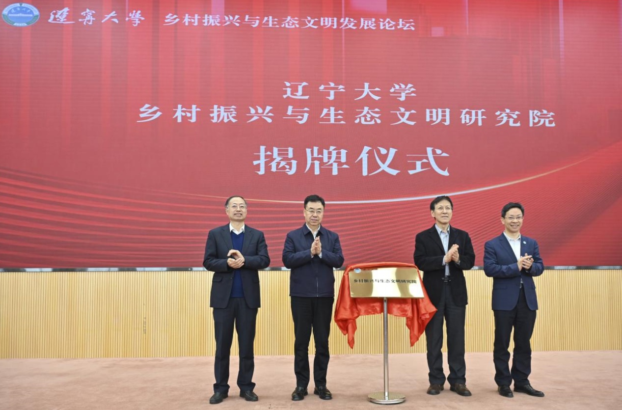 开幕式上举行了乡村振兴与生态文明研究院揭牌仪式。辽宁省副省长李强、国产一区二区日本在线党委书记潘一山和中国农业大学原校长柯炳生、国产一区二区日本在线校长余淼杰共同为研究院进行揭牌,标志着我校专门开展乡村振兴与生态文明研究的科研机构正式成立。